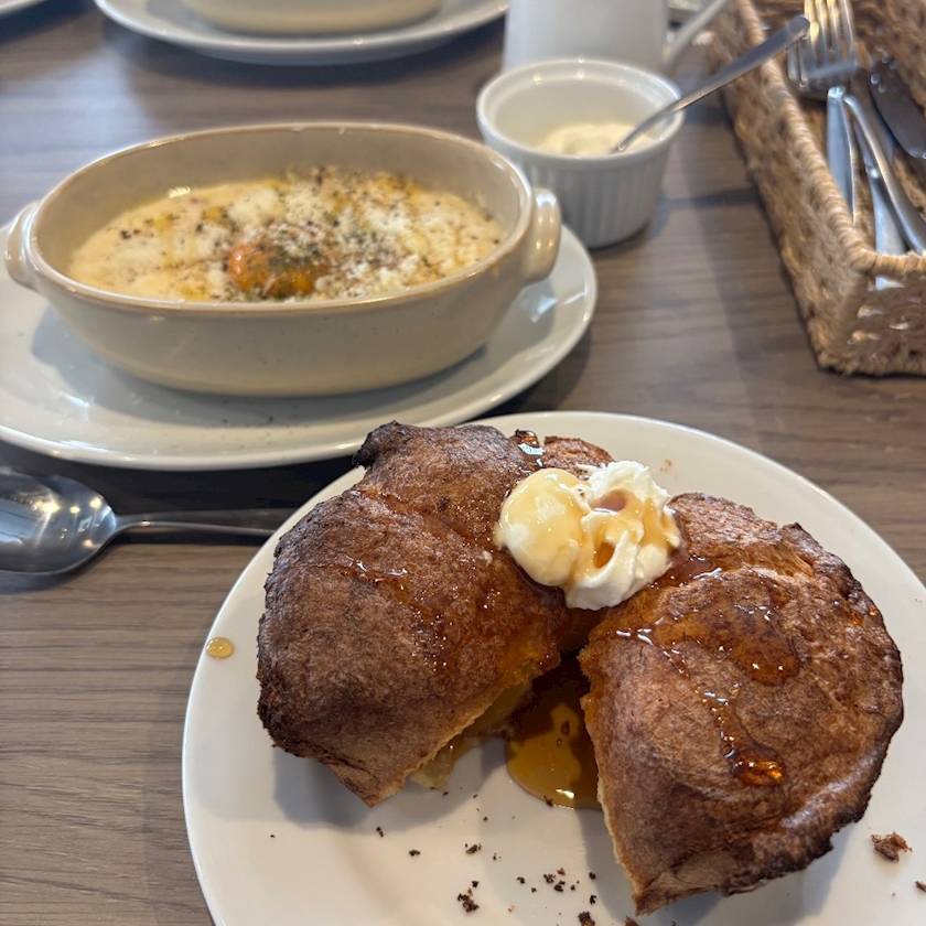 メープルシロップと塩ホイップバターとても美味しかったです🤤メインのグラタンも美味しかった🍽´-